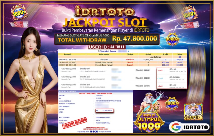 IDRTOTO BAYAR LUNAS JACKPOT PERMAINAN SLOT GATES OF OLYMPUS 1000 Rp.47.800.000 – LUNAS