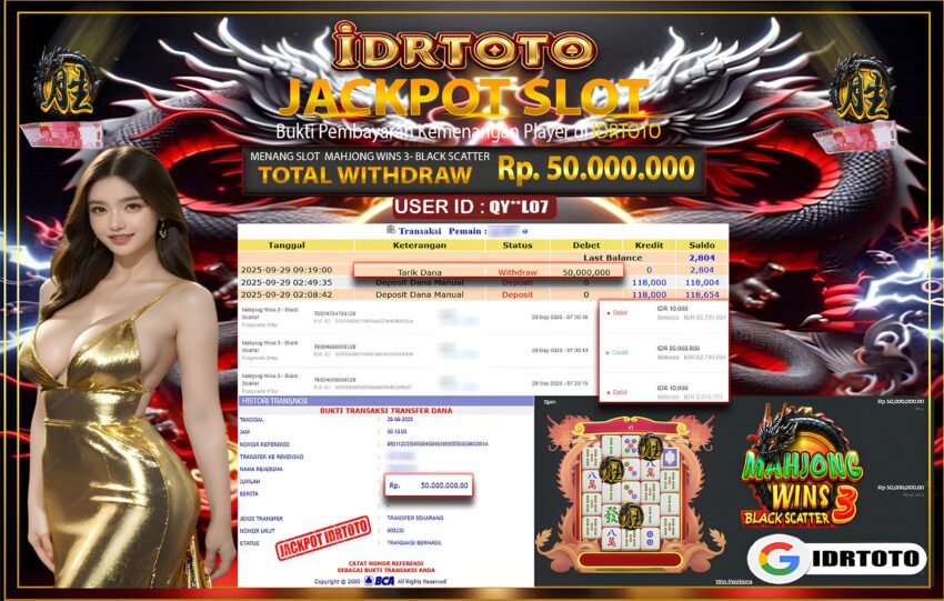 IDRTOTO BAYAR LUNAS JACKPOT PERMAINAN MAHJONG WINS 3- BLACK SCATTER Rp.50.000.000 – LUNAS