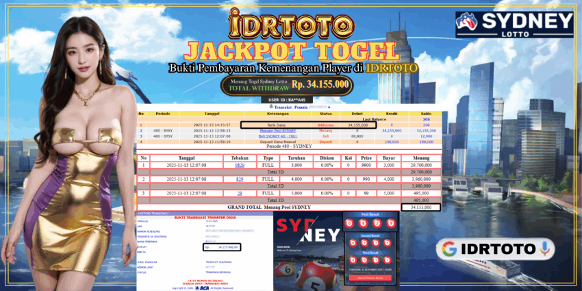 IDRTOTO JACKPOT PERMAINAN TOGEL SYDNEY LOTTO Rp.34.155.000 – LUNAS