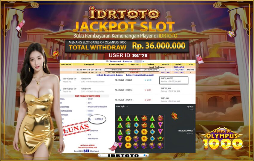 IDRTOTO BAYAR LUNAS JACKPOT SLOT GATES OF OLYMPUS 1000 Rp.36.000.,000 – LUNAS