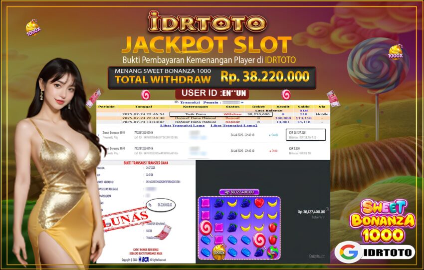 IDRTOTO BAYAR LUNAS JACKPOT SLOT SWEET BONANZA 1000 Rp.38.220.,000 – LUNAS