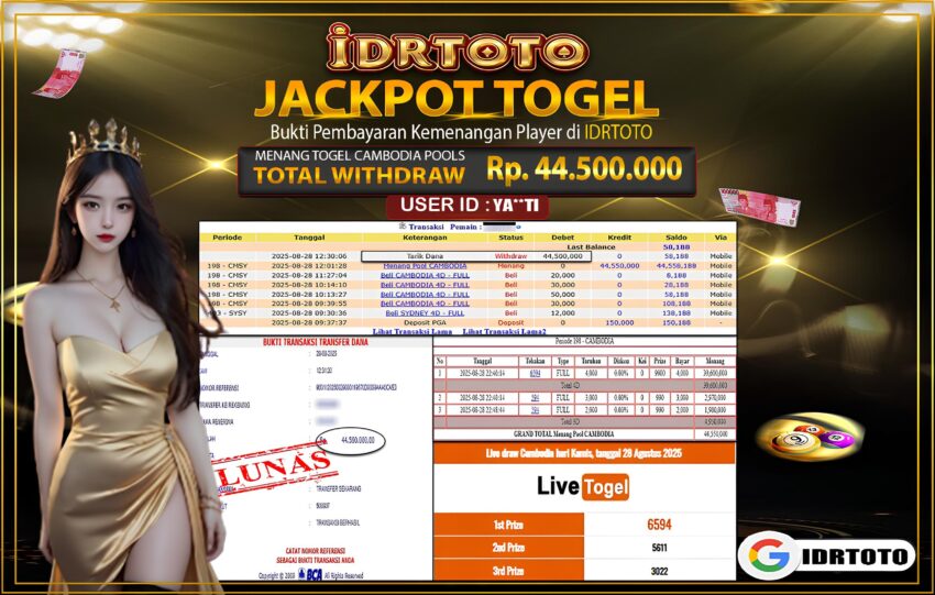 IDRTOTO BAYAR LUNAS TOGEL CAMBODIA POOLS Rp.44.500.000 – LUNAS