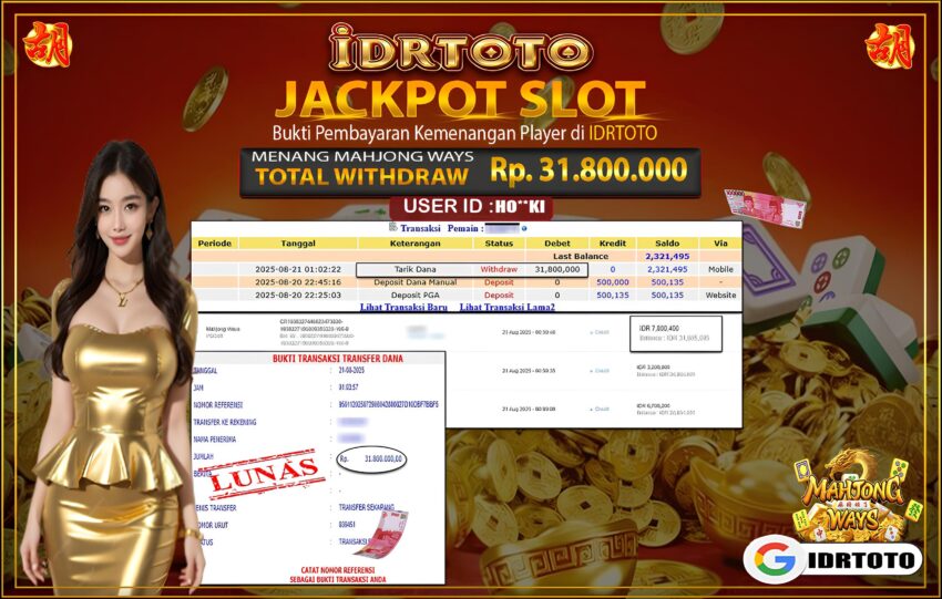IDRTOTO BAYAR LUNAS SLOT MAHJONG WAYS 1 Rp.31.800.,000 – LUNAS